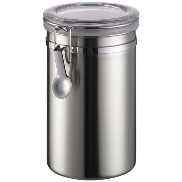 Ground coffee can be kept fresh in a pretty container like this one. It looks cute on your counter and the scoop helps you measure.